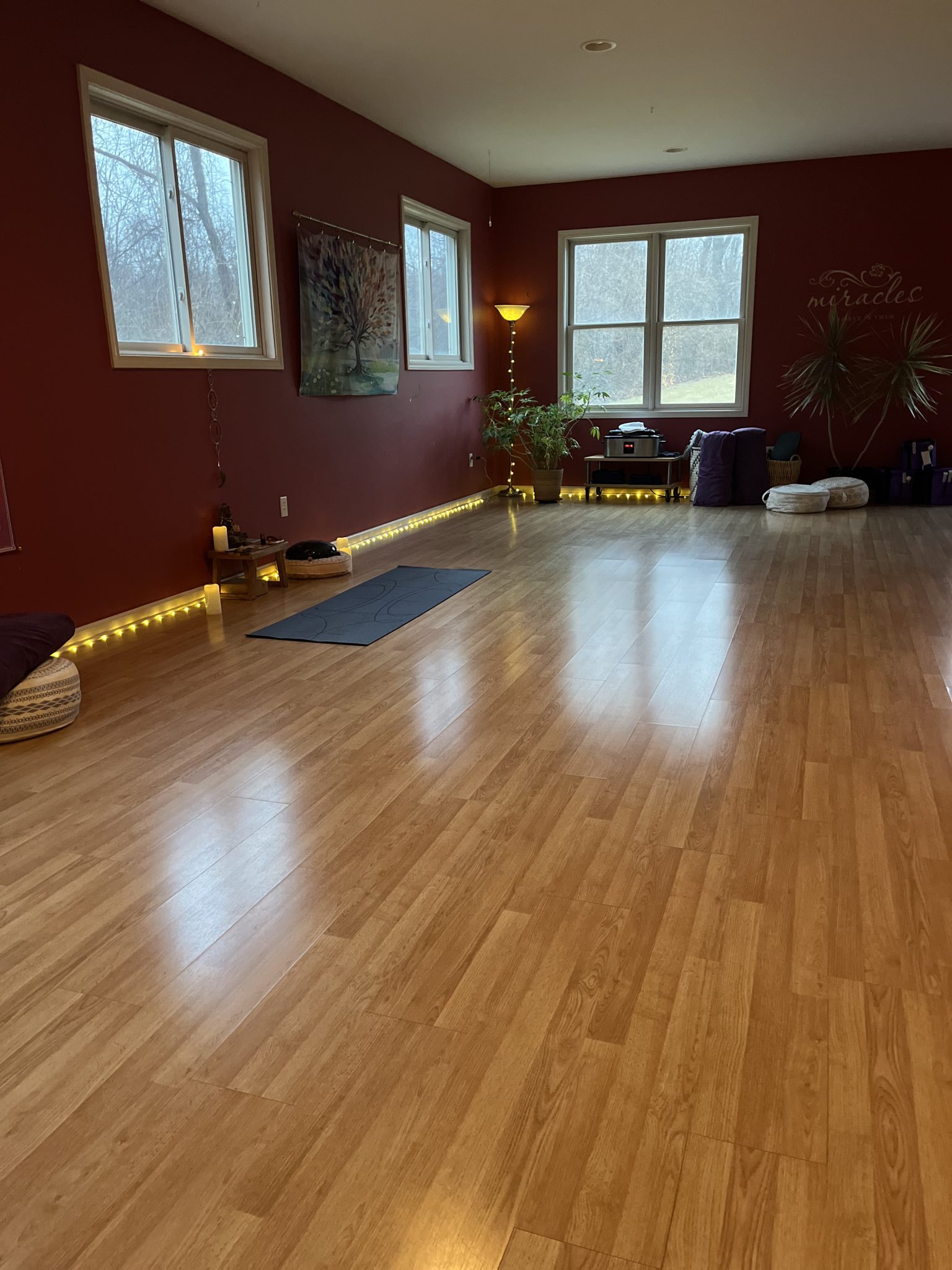 Nestled in a peaceful setting with heated floors, forest-facing windows, and a fully equipped kitchen just beyond the double doors, So Hum Yoga Studio is a space designed for deep connection and growth. Whether you’re here for a weekly class, a full-day retreat, or a weekend training, the studio offers comfort, warmth, and inspiration.